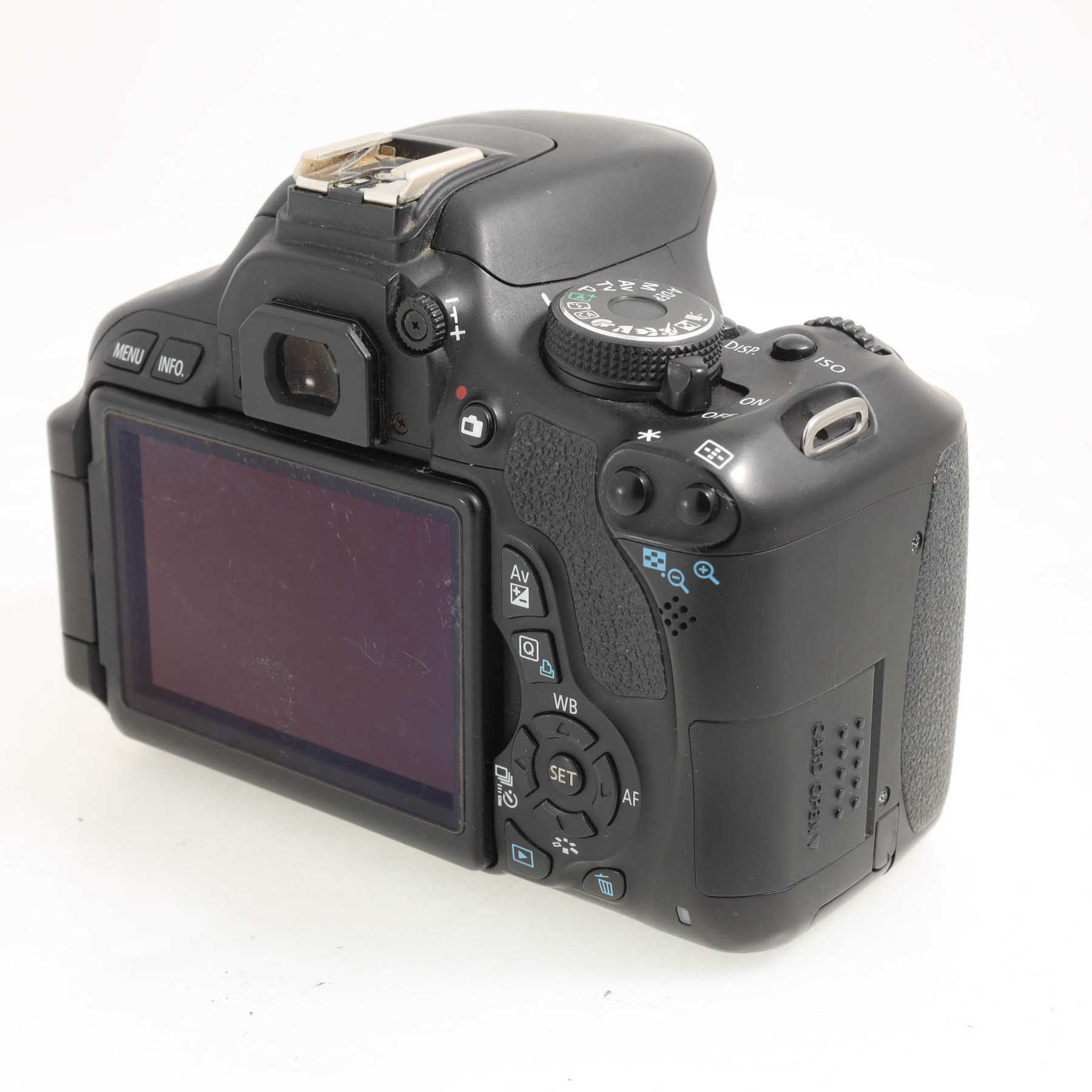 Пробег затвора 48080 кадров. Утерян резиновый наглазник видоискателя. Небольшие потёртости на корпусе вспышки. Потёртости на нижней части корпуса камеры. На дисплее защитная плёнка. Объектив в очень хорошем косметическом состоянии, оптика чистая, без дефектов.Любительский цифровой зеркальный фотоаппарат с 18-ти мегапиксельной матрицей формата APS. Можно устанавливать объективы серий EF и EF-S.