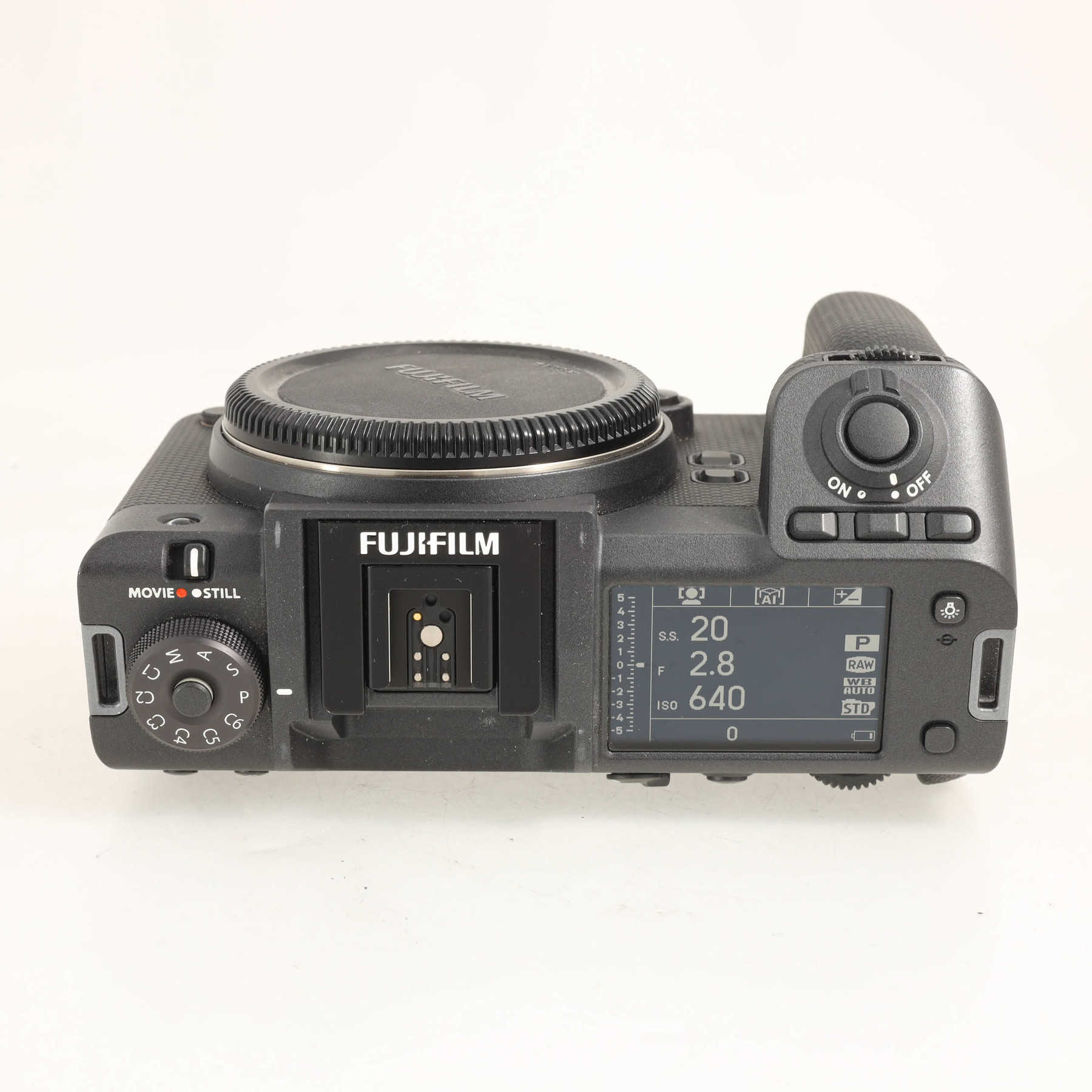 Пробег затвора 17463 кадра. Небольшие потёртости байонета и салазок горячего башмака.Флагманская модель беззеркальной среднеформатной камеры GFX 100 II получила новый сенсор размером 43.8 x 32.9 мм с разрешением 102 Мп, скорость чтения с которого увеличилась в два раза по сравнению с предыдущей моделью GFX 100S. Процессор обработки изображений X-Processor также был обновлен. Всё это позволило существенно улучшить скорость и точность работы алгоритмов автофокусировки, в том числе при съёмки видео. Для удобства фотографа OLED видоискатель с разрешением более 9 миллионов точек и частотой обновления кадров 120Гц вновь стал съемным, а вертикальная рукоятка опциональной.