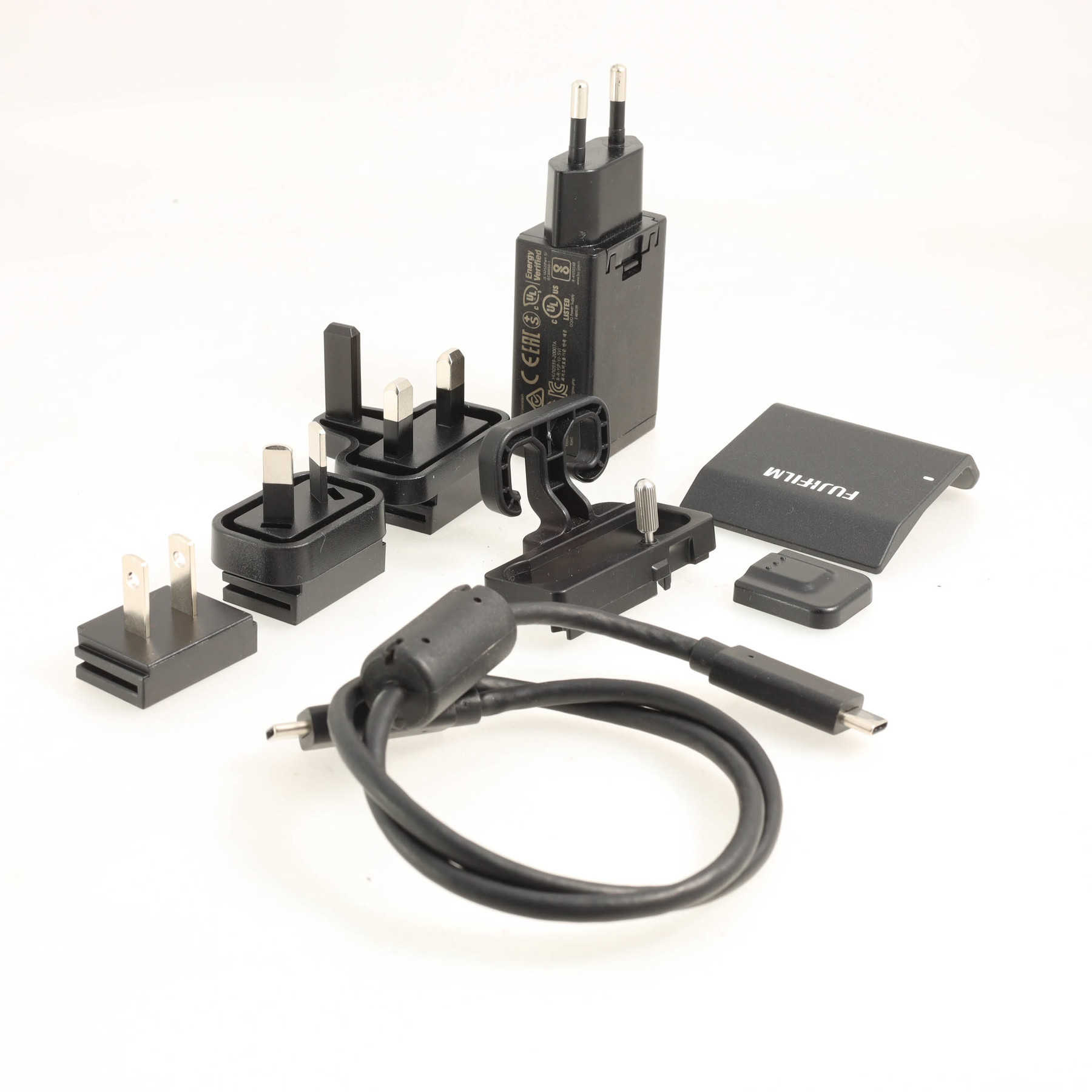 Оригинальная упаковка, зарядное устройство с набором вилок и usb-c кабелем, крышка видоискателя, крышка гнезда крепления видоискателя, передняя крышка, фиксатор кабеля.Краткое описание: