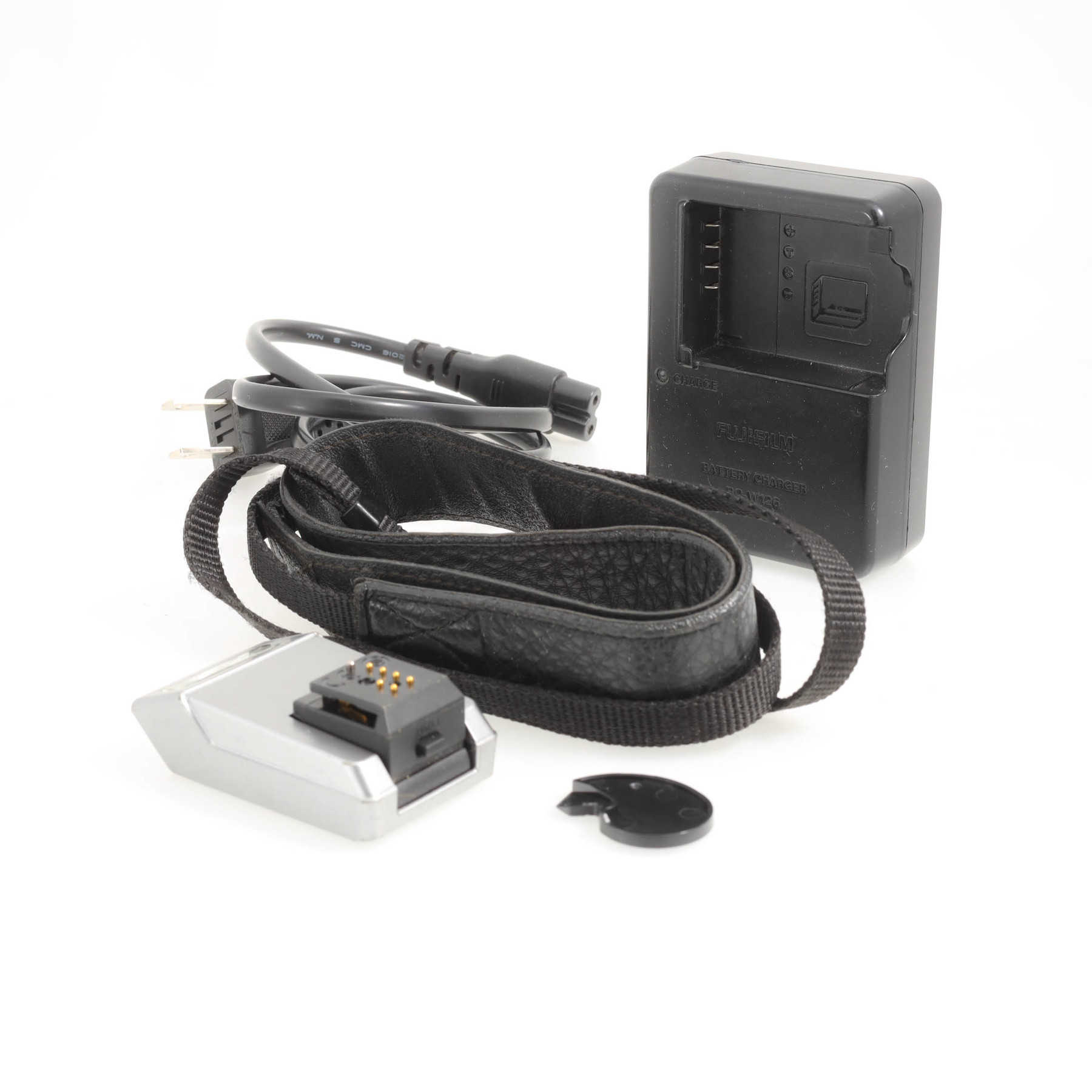 Оригинальная упаковка, зарядное устройство с сетевым кабелем (us-вилка), шейный ремень, вспышка Fujifilm EF-X8, аккумулятор NP-W126S.Краткое описание: