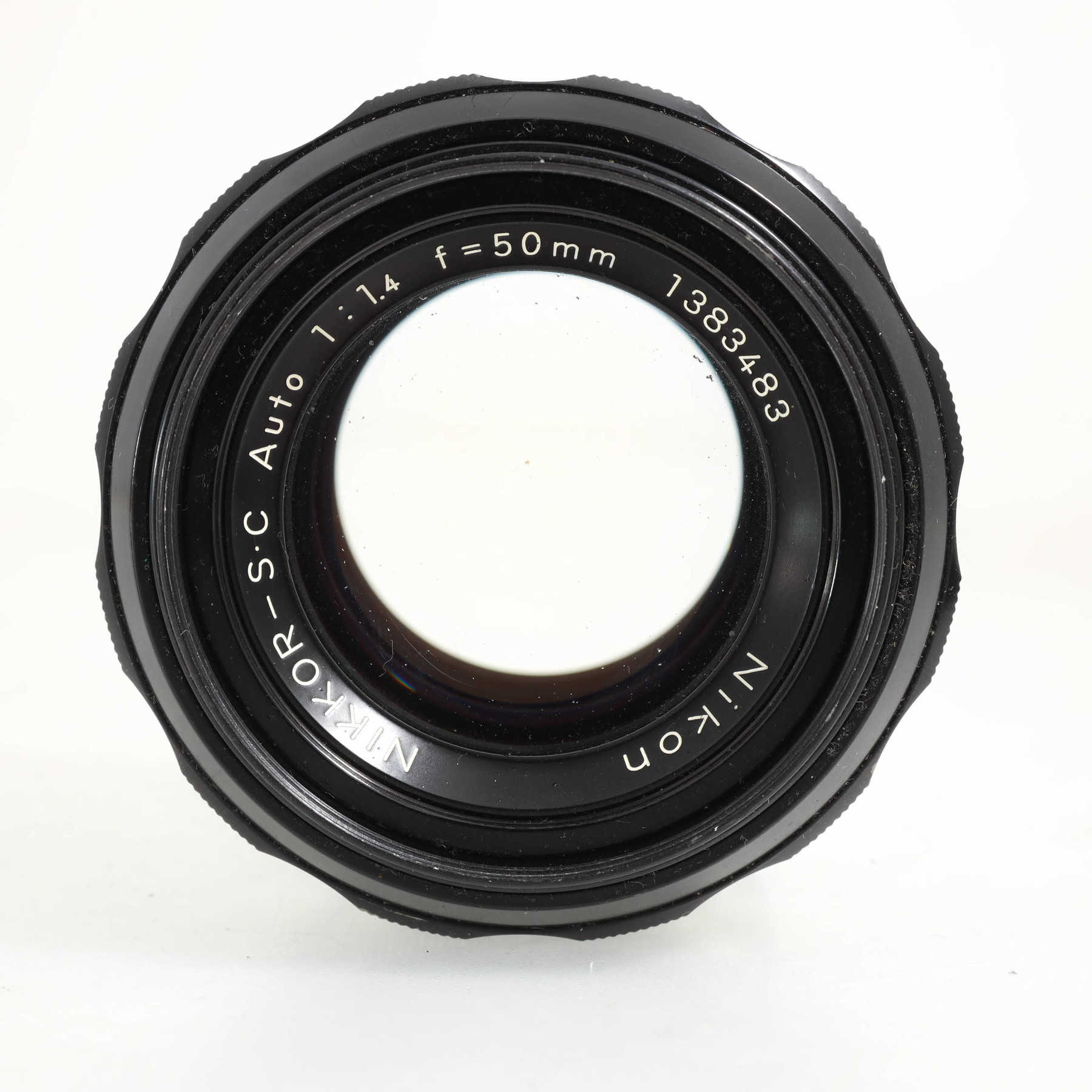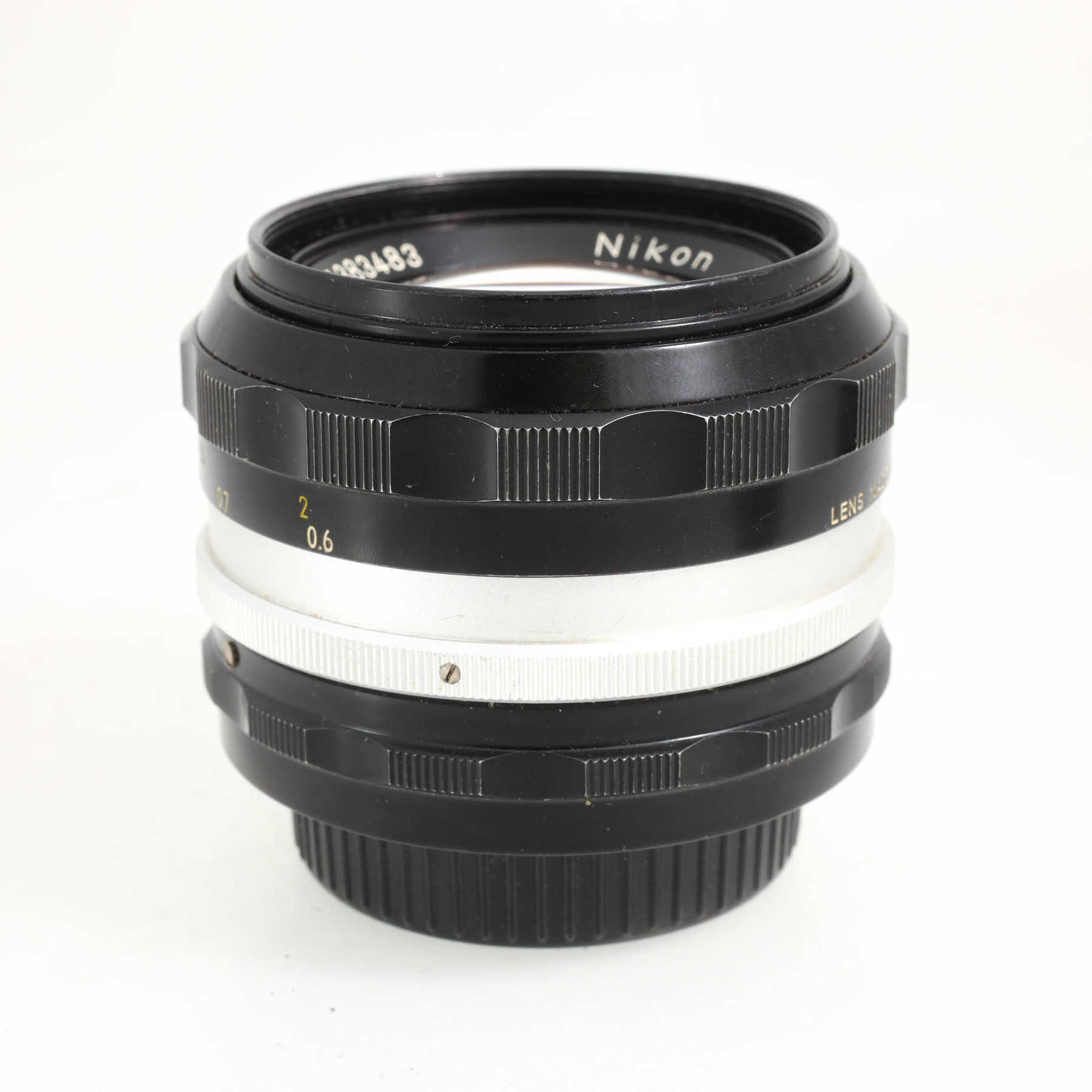 Потёртости оправы. На передней линзе небольшие точечные повреждения, в основном ближе к краю, минимально влияющие на изображение. Фокусировочное кольцо с плавным, но сухим ходом.Штатный светосильный объектив с ручной фокусировкой для камер с байонетом Nikon F и передачей значения диафрагмы с помощью поводка в камере и “заячьих ушек” (rabbit ears) на объективе. На более современных камерах, в том числе автофокусных, объектив можно использовать, но экспонометр работать не будет.