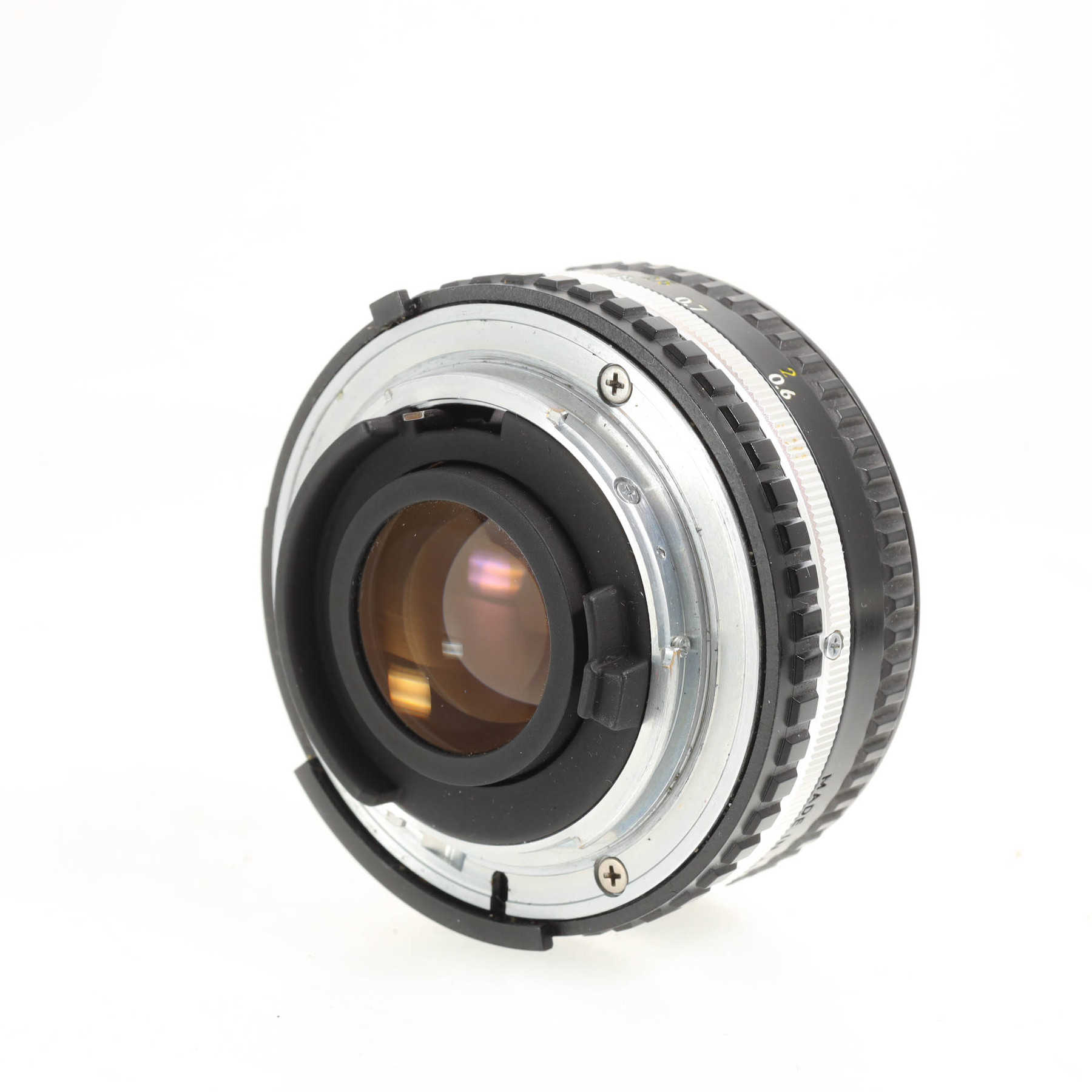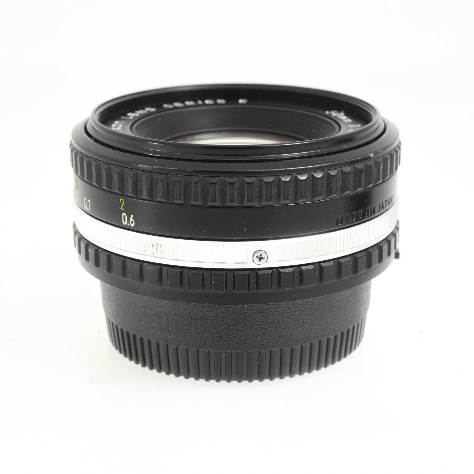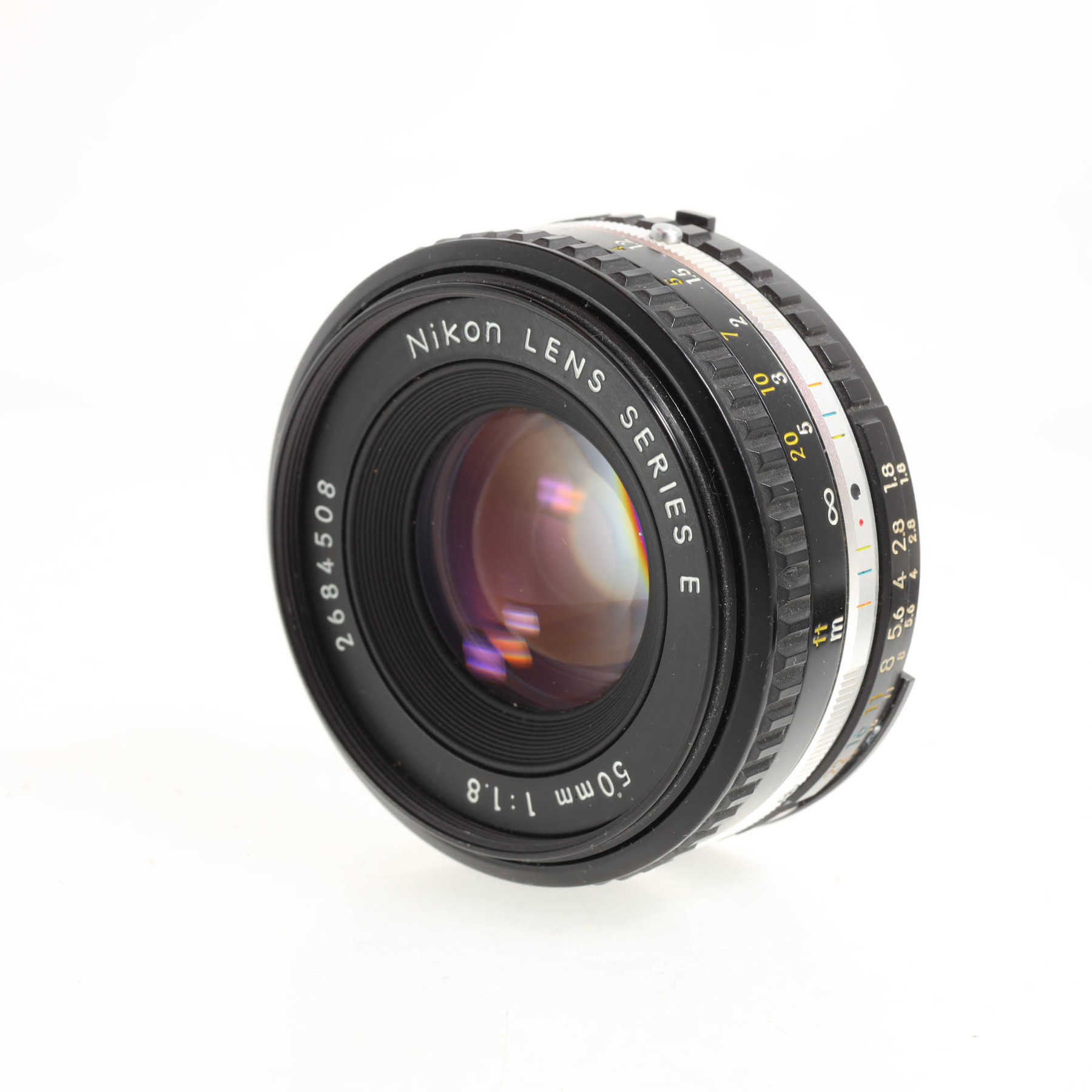 Внешне отличное состояние с минимальными использования. Внутри на линзах есть небольшое помутнение, наблюдаемое в сильных косых лучах света.Штатный 50 мм объектив с ручной фокусировкой из бюджетной линейки “Series E” для зеркальных фотокамер с байнетом Nikon F.