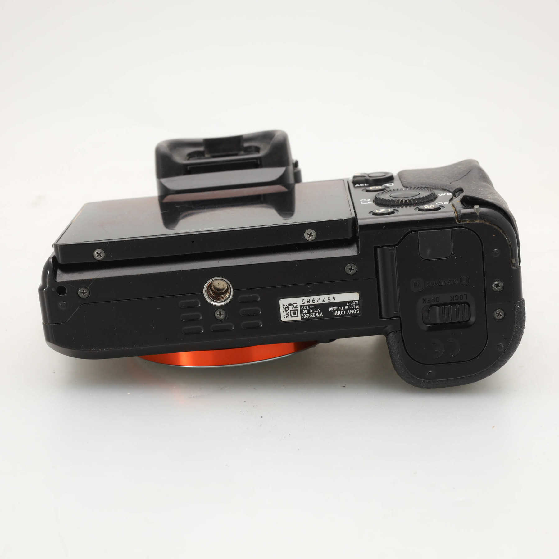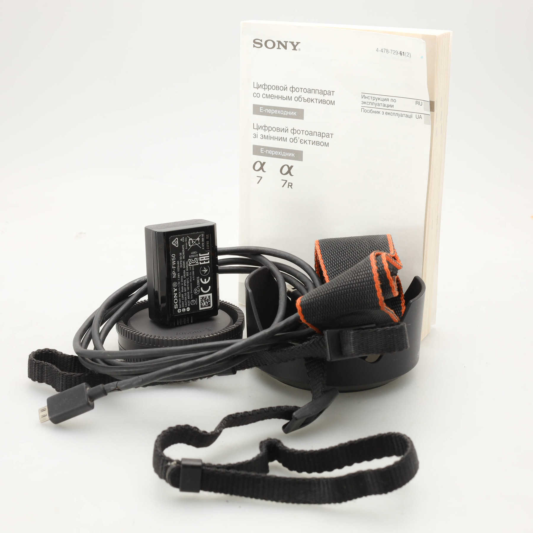 Пробег затвора 107109 кадров. Небольшие потёртости корпуса. Отходит резинка крышки батарейного отсека. На дисплее защитная плёнка. Байонет с минимальными потёртостями. Объектив со следами пользования. Оптика чистая, без дефектов.Первая беззеркальная полнокадровая камера Sony с байонетом Sony E-mount. Оснащена 24 Мп КМОП матрицей.